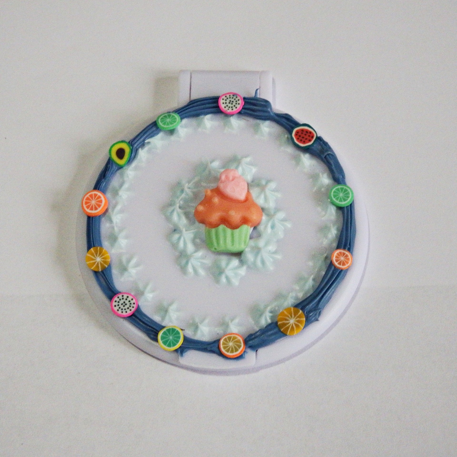 colle-crème : crème spéciale à base de colle et d'argile qui s'applique avec une douille, décorations sur le dessus en plastique et/ou strass