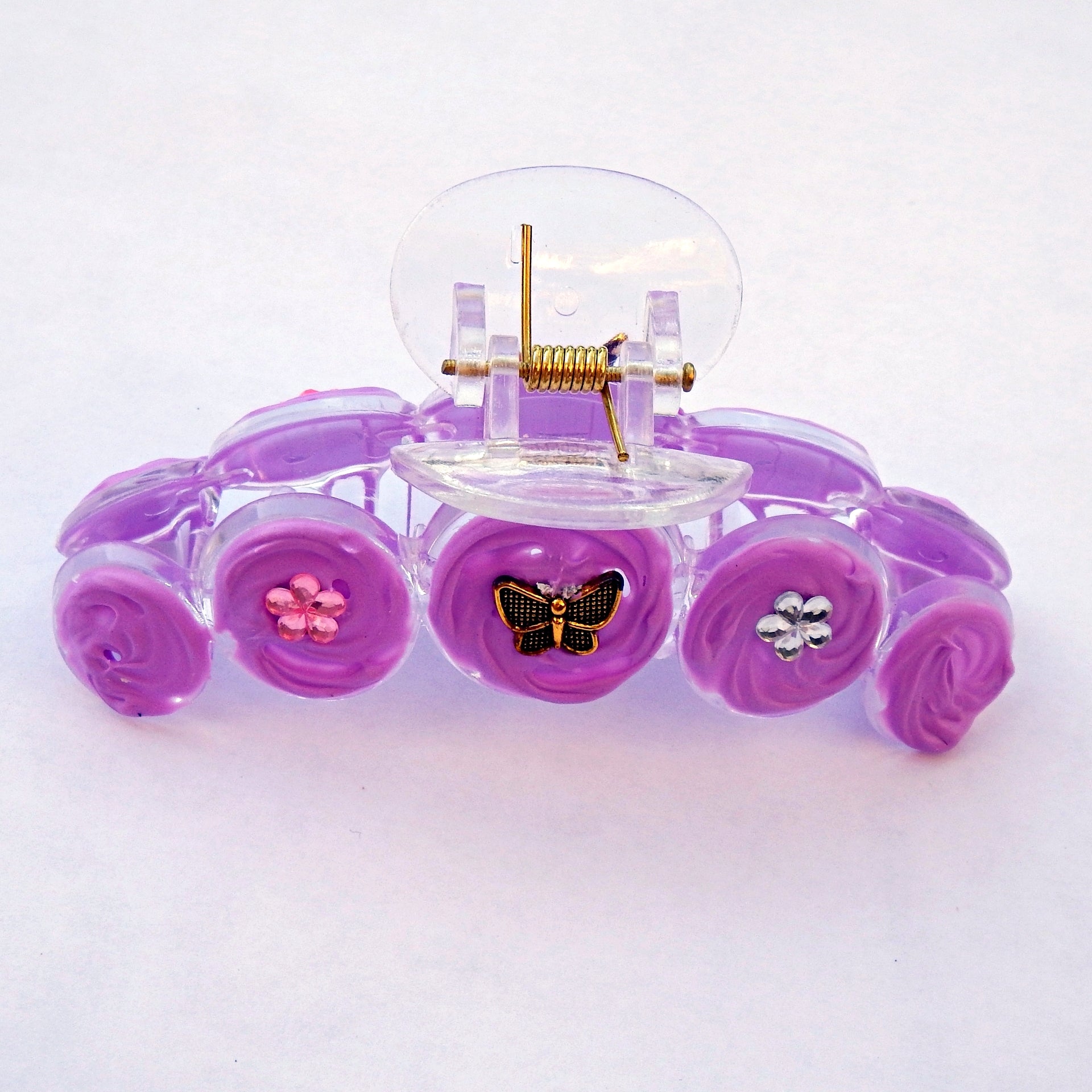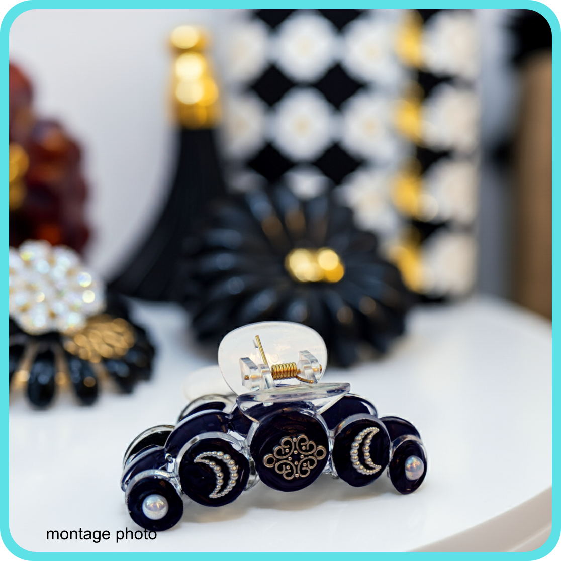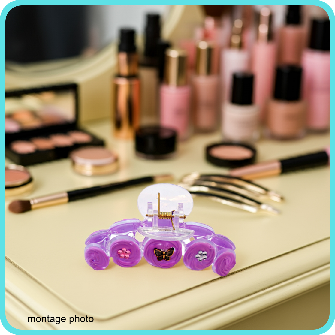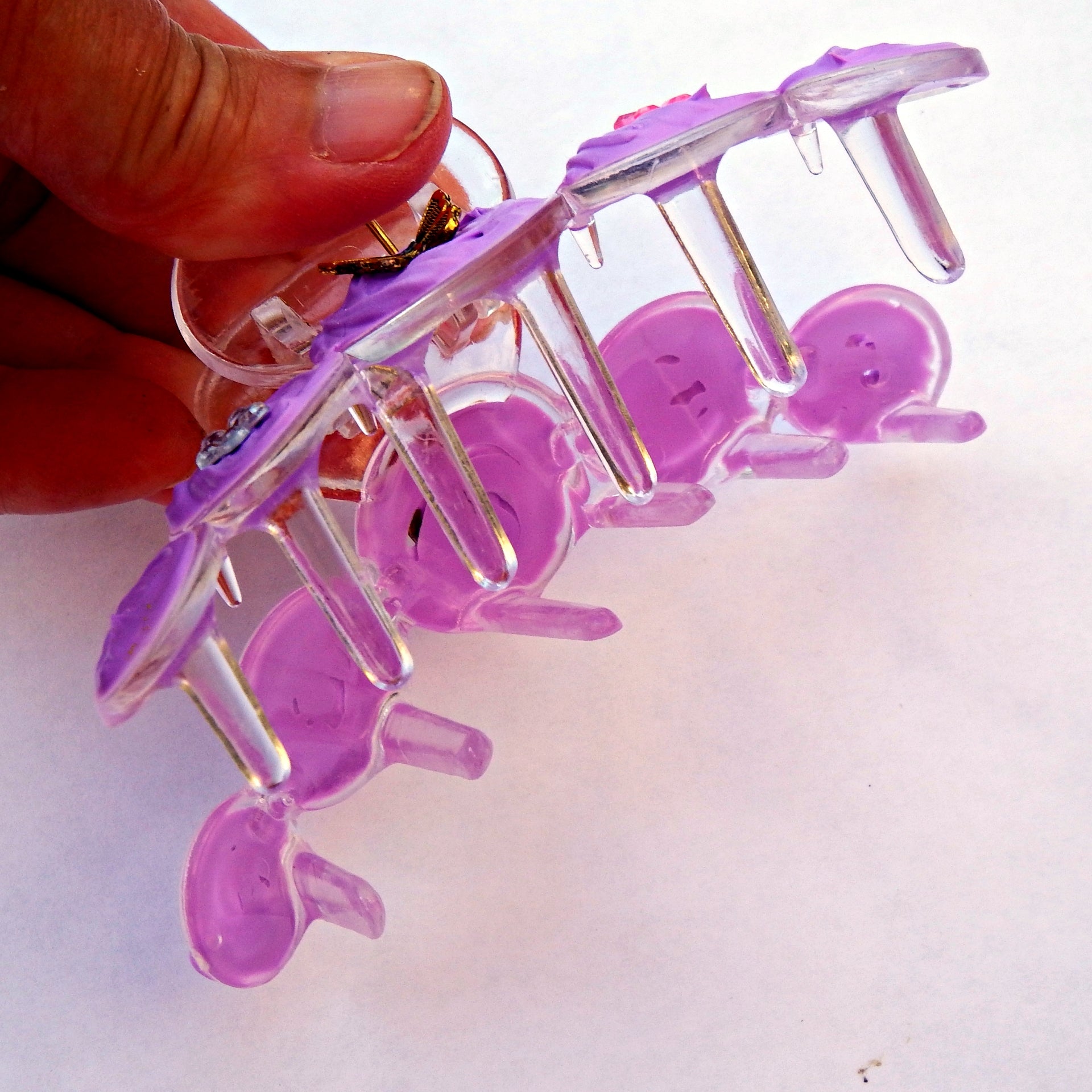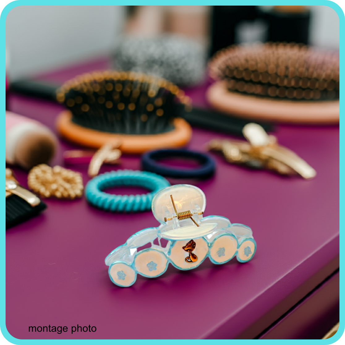 Pince à cheveux en plastique de 10 cm, avec décoration artisanale en colle-crème, - Pièce unique. envoi gratuit en France si inférieur à 200g ou commande supérieure à 50 euros.