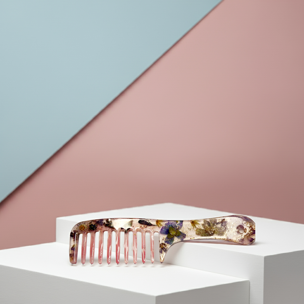 Peigne en résine avec fleurs naturelles, pièce unique, plusieurs modèles