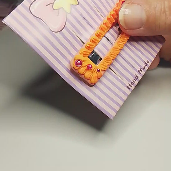 Pinces en métal et plastique clic clac de 5,5 cm, avec décorations artisanales en colle-crème - Pièces uniques. envoi gratuit en France si inférieur à 200g ou commande supérieure à 50 euros.