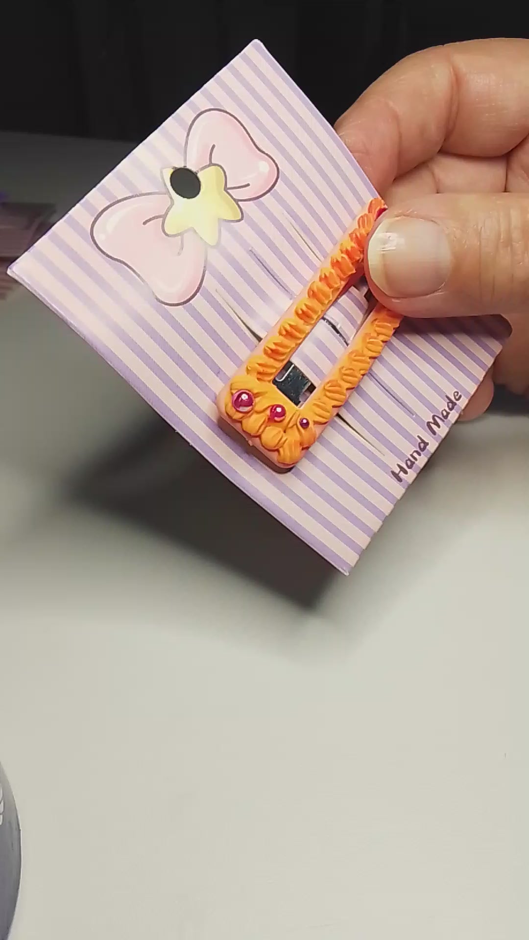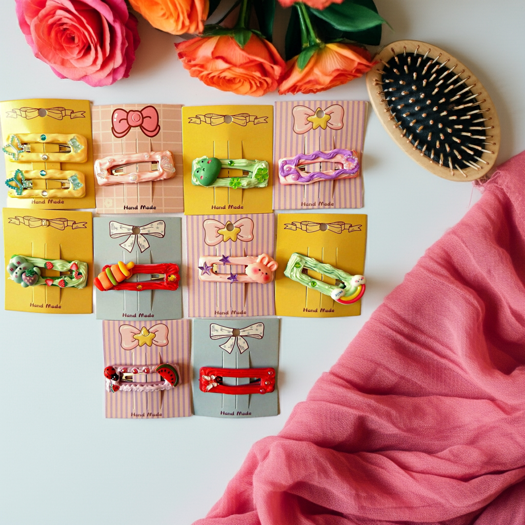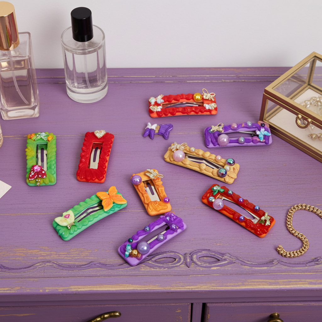 Pinces en métal et plastique clic clac de 5,5 cm, avec décorations artisanales en colle-crème - Pièces uniques. envoi gratuit en France si inférieur à 200g ou commande supérieure à 50 euros.