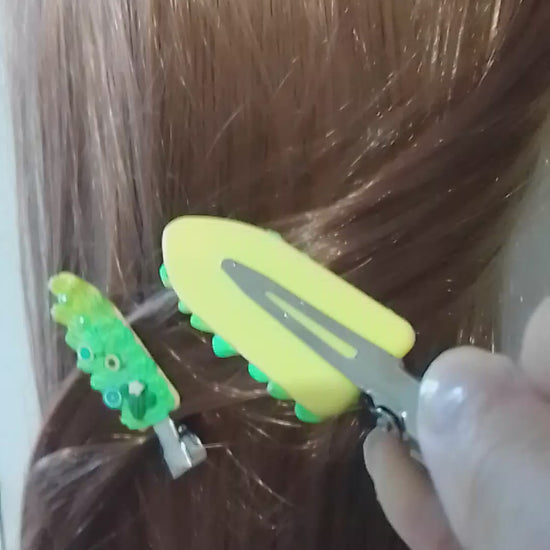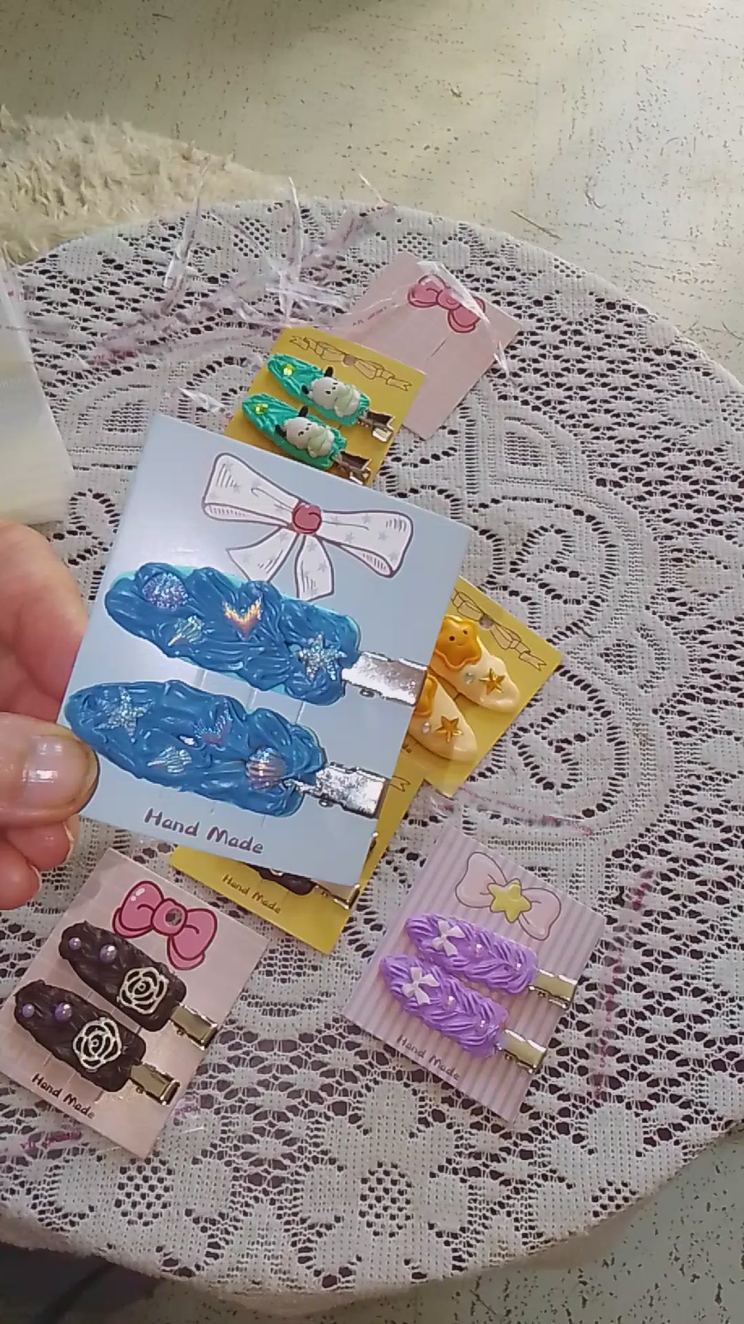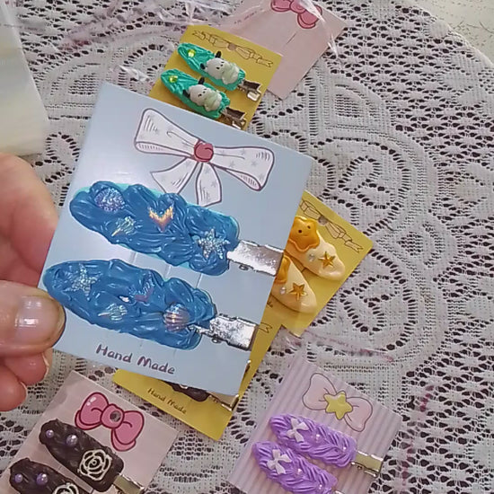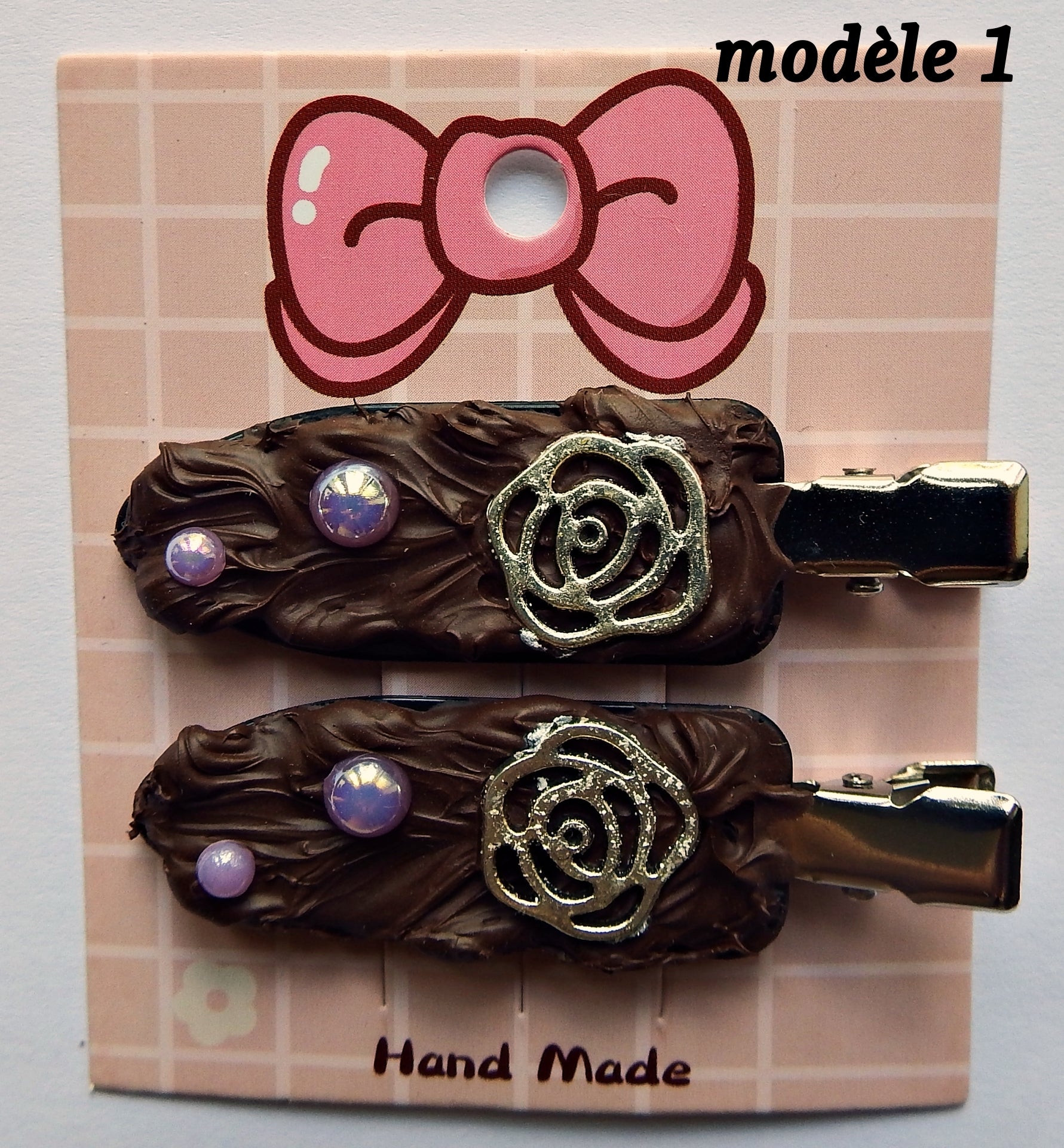Pinces en métal et plastique de 6 cm, avec décorations artisanales en colle-crème - Pièces uniques. envoi gratuit en France si inférieur à 200g ou commande supérieure à 50 euros.