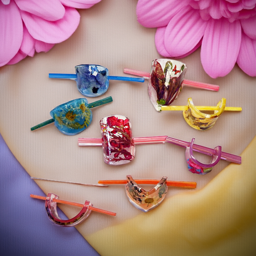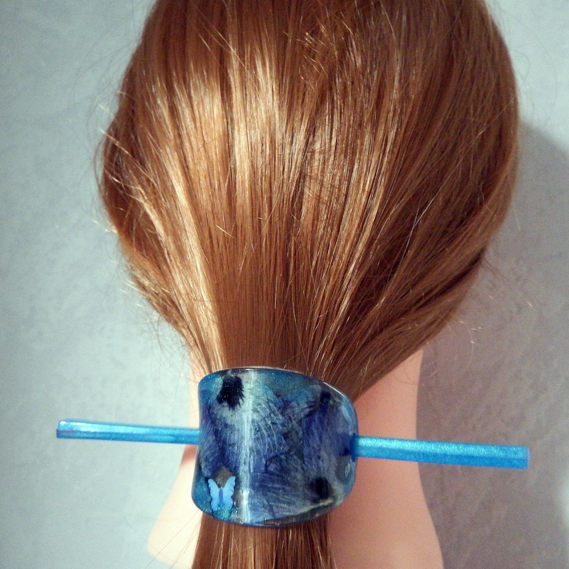 Porte queue de cheval en résine avec inclusion de fleurs naturelles séchées ( par mes soins)